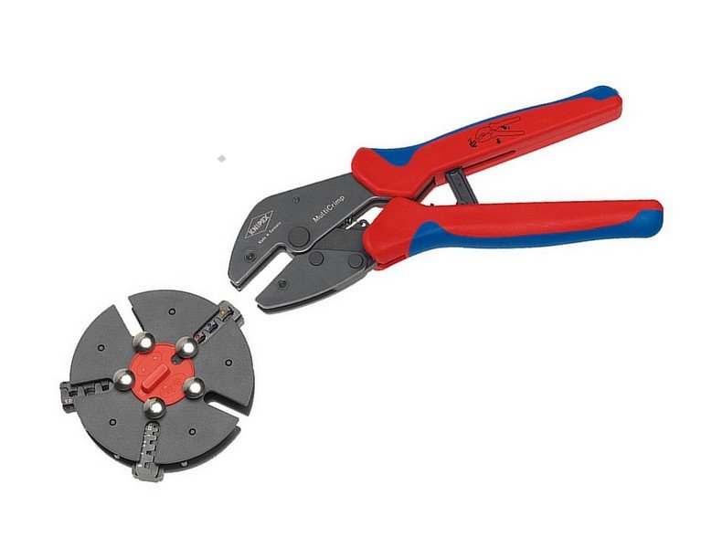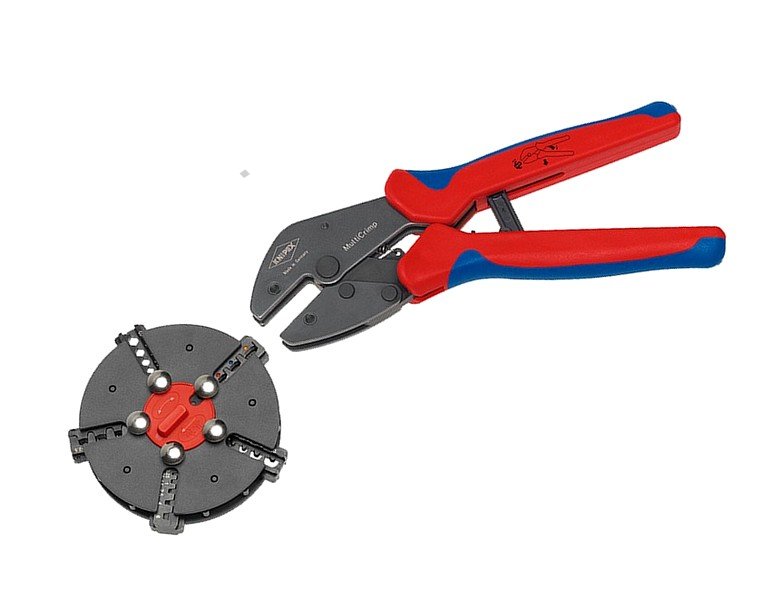 - lisovací kleště s kruhovým zásobníkem a třemi výměnnými nástavci - jeden nástroj pro běžné krimpování - rychlá a snadná výměna krimpovacích nástavců bez nutnosti dalšího nářadí - bezpečná úschova výměnných nástavců v kruhovém zásobníku - komfortní, výkonné krimpovací kleště - spolehlivé krimpování jako u pevně namontovaných krimpovacích nástavců - konstantně vysoká kvalita lisování - precizní profily a nucené blokování (možné odblokovat) - chromvanadová elektroocel ve zvláštní jakosti, kalená v oleji - kruhový zásobník: plast, vyztužen optickými vlákny - na neizolované otevřené konektory, lisování stáčením - izolovaná kabelová oka + konektory - dutinky - kalené kleště - rukojeti s vícesložkovými povlaky