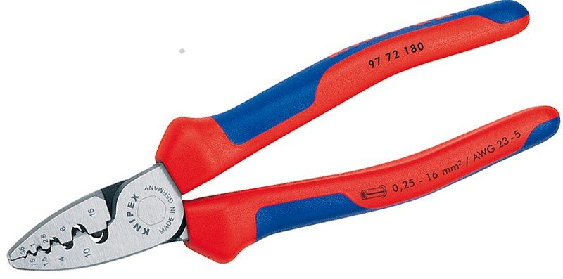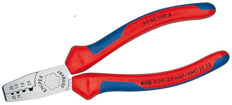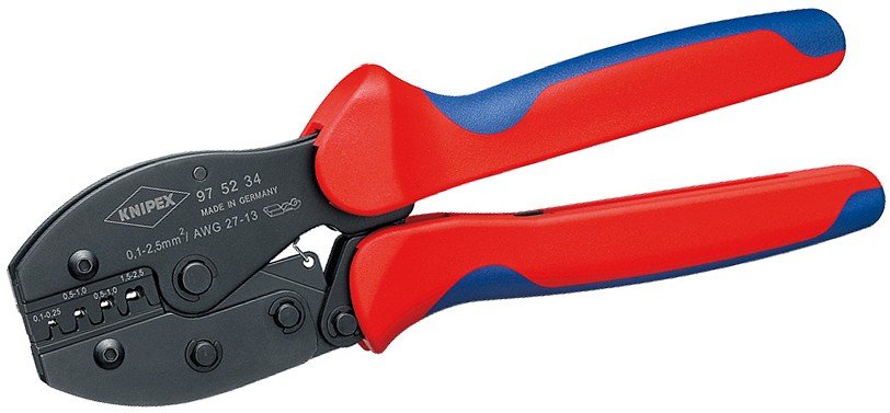 - k lisování dutinek DIN 46228 část 1+4 v rozsahu 0,25 až 2,5 mm2 - lisování do označených lichoběžníkových profilů - spolehlivé spojení dutinky a vodiče - vanadová elektroocel,kovaná, kalená v oleji - leštěná hlava - rukojeti potažené umělou hmotou