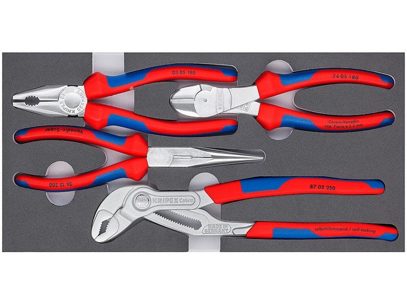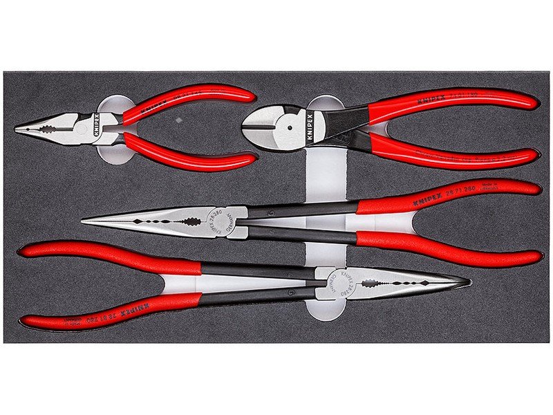 - 4-dílná souprava kleští - pevný systém se 2-mi omyvatelnými plastovými vložkami navržen pro vybavení dílenských vozíků - označení rozměrů v plastových vložkách - přesné a praktické uložení nářadí - možnosti individuálního vybavení díky vyměnitelným vložkám - určeno pro vozíky B107, B117, P205, P207, P206, P407, P407L, P306, P308, EXTRA LARGO, P203
