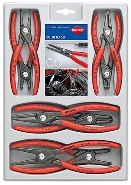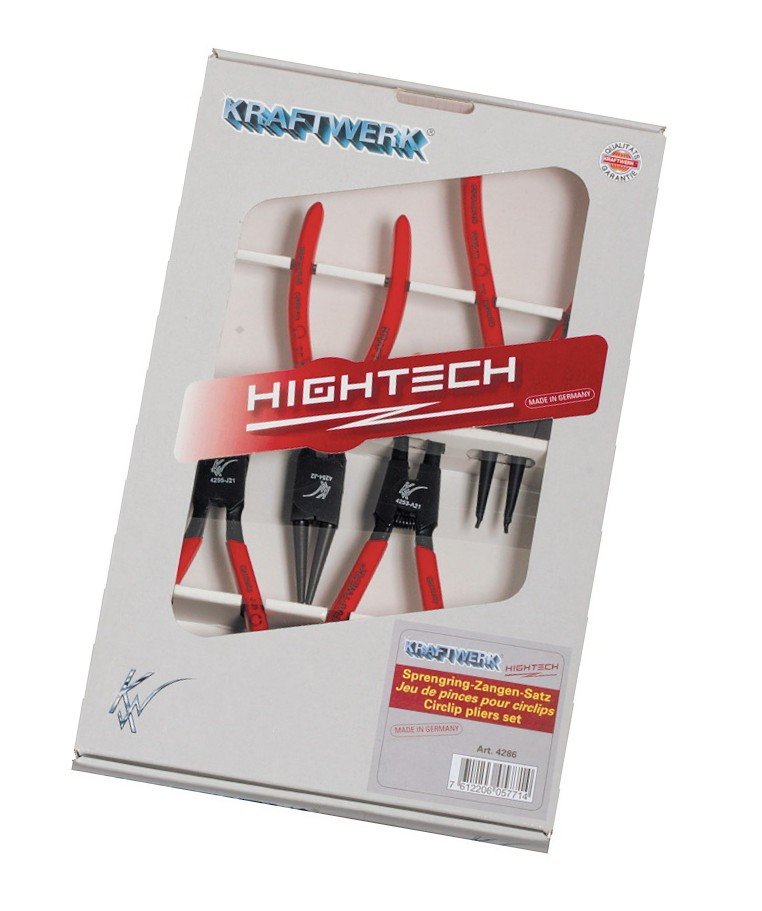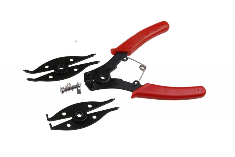 - segerové kleště 4 v 1 - k montáži pojistných kroužků na hřídelích - 2 x rovné A1, A2 - 1 x vyhnuté 45° - 1 x vyhnuté 90° - 10-50mm - vnější a vnitřní - uloženo v plastové kazetě