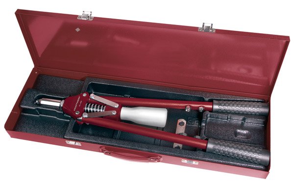 - pákové kleště se 4-mi vyměnitelnými nástavci - na hliníkové, ocelové a nerezové matice průměru M5, M6, M8, M10 - 4 převlečné trny s nosem - díky velkému pákovému převodu snadné a komfortní nýtování - robusní provedení pro velký rozsahnýtů - součástí sady jsou hliníkové nýtovací matice M5x0,8mm á 14ks, M6x1,0mm á 9ks, M8x1,25mm á 6ks, M10x1,5mm á 6ks - v kovové kazetě