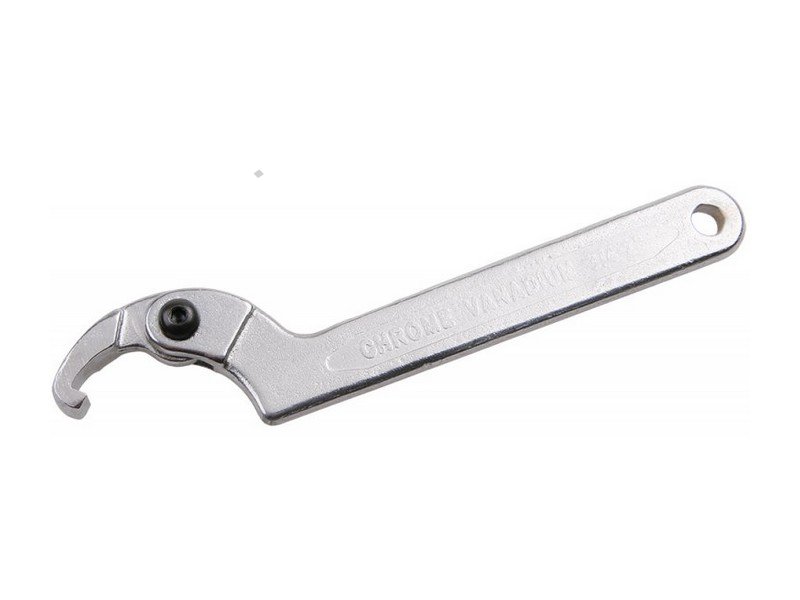 - stavitelný hákový klíč pro límce, kroužky a ložiska - čelist s upínacím kolíkem - při používání je pořeba zajistit přesné nasazení háku čelisti - provedení: matný chromovaný povrch, kovaný, chrom vanadiová ocel