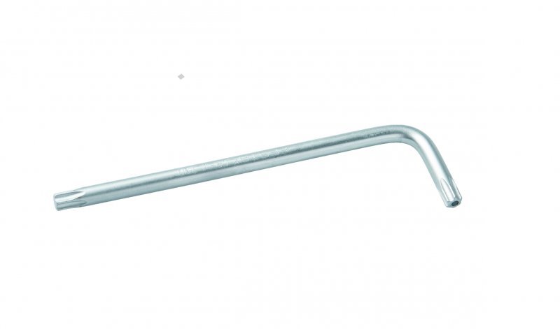 - zahnutý klíč TORX s otvorem na obou koncích - ocel typu S2 (chrom/silicium/magnesium/molybden/vanadium) - matně chromované
