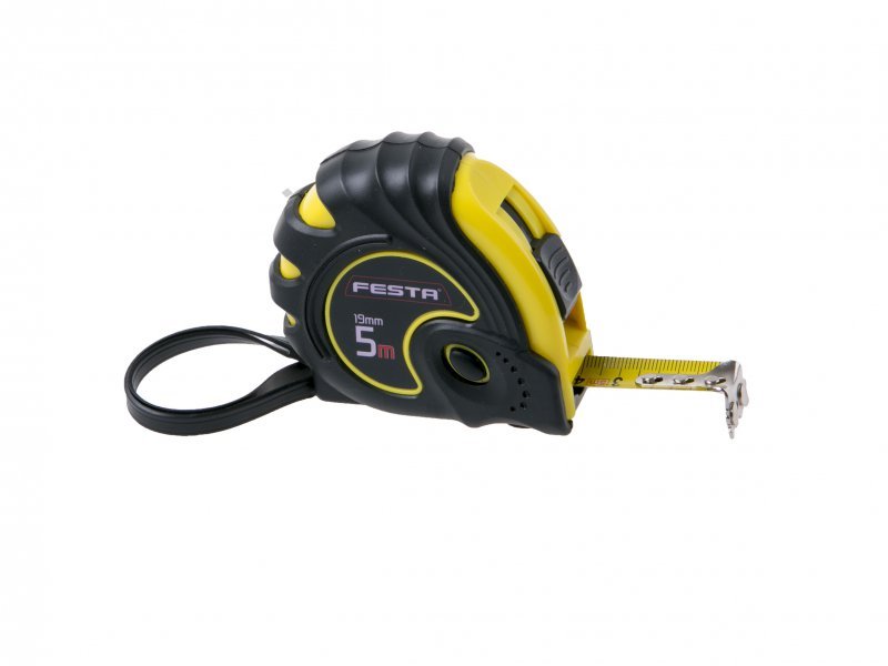 - měřící pásmo s rychlým navíjením a sklápěcí rukojetí - nylonem potažené pásmo - v pevném nárazuvzdorném ABS pouzdru - ocelové pásmo
