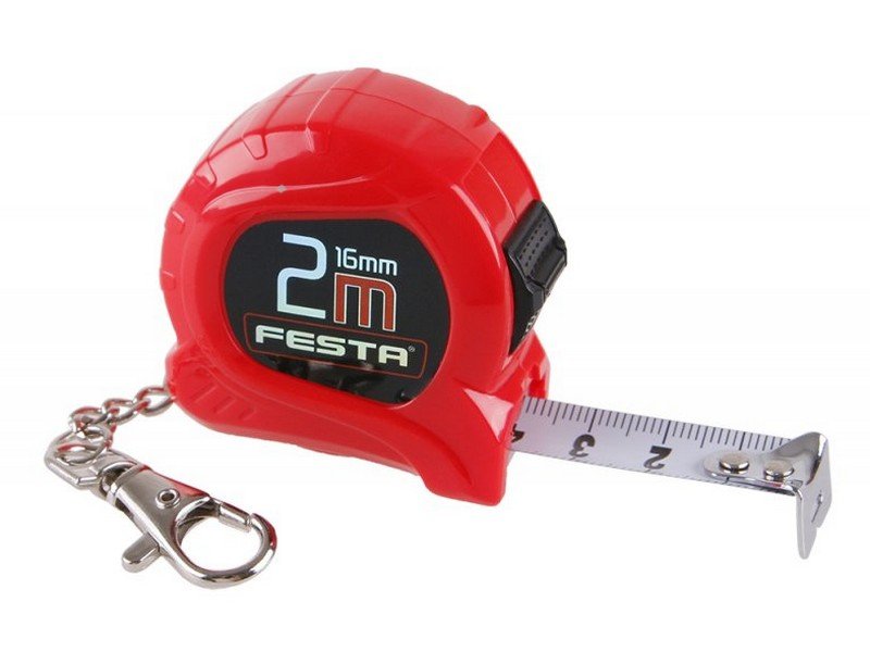 - svinovací metr, přívěšek na klíče s karabinou - tělo metru vyrobeno z kvalitního ABS plastu - 1 brzda s dorazem navíjení pásky - bílá barva pásky - dobře čitelná stupnice - koncový háček s antikorozní úpravou