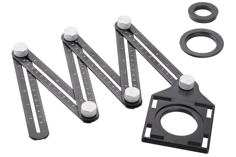 - víceučelové skládací pravítko - šablona pro značení, přenos a vytváření speciálních tvarů, úhlů nebo otvorů pro obkladače, podlaháře a jiné profese nejen ve stavebnictví - 6 kovových nastavitelných ramen s centimetrovou a palcovou stupnicí - masivní aretační šrouby pro přesné a jednoduché nastavení požadovaného tvaru - průměry pro značení otvorů 26, 41 a 46 mm