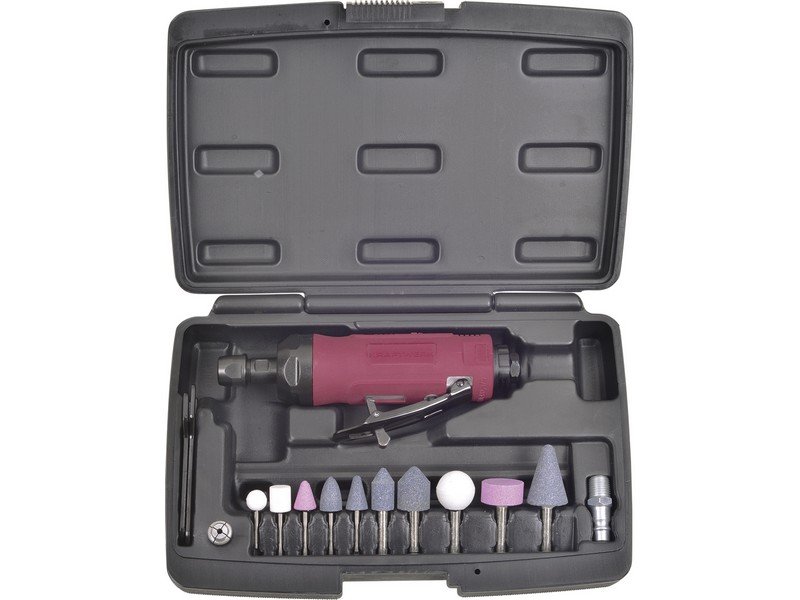 - miniaturní konstrukce ve tvaru pera – velmi pohodlná manipulace např.pro rytí, obrábění drobných detailů, čištění, odhrotování, modelářství a další - pynule regulovatelná rychlost otáček - nízké vibrace a relativně tichý provoz - zadní výfuk vzduchu, díky němuž se prach/částice odvádějí od pracovního povrchu - upínání / průměr kleštiny 3 mm - pracovní tlak vzduchu 6,3 bar - rozměry138 × 16 mm - hmotnost 0,2 kg