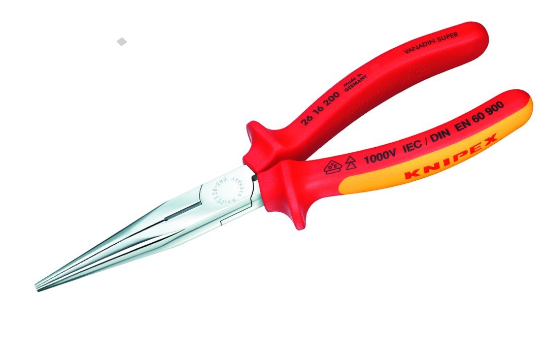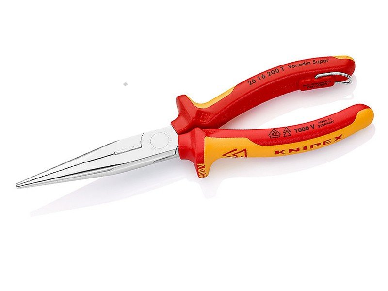- přesné pružné hroty odolné proti zkrutu - ploché a kulaté, dlouhé, zašpičatělé čelisti - s břity (tvrdost cca 61 HRC) na měkké, středně tvrdé a tvrdé dráty - vanadová elektroocel,kovaná, kalená v oleji - pochromované kleště - rukojeti izolované vícesložkovými obaly - certifikace VDE
