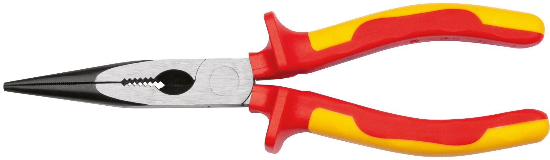 - vhodné pro jemné uchopování a stříhání - zašpičatělé půlkulaté čelisti - plochy čelistí ozubené - s břity pro měkký, středně tvrdý a tvrdý drát - břity doplňkově induktivně zakalené, tvrdost břitů 61 HRC - vanadová elektroocel kovaná, kalená v oleji - pochromované kleště - rukojeti izolované vícesložkovými obaly - certifikace VDE