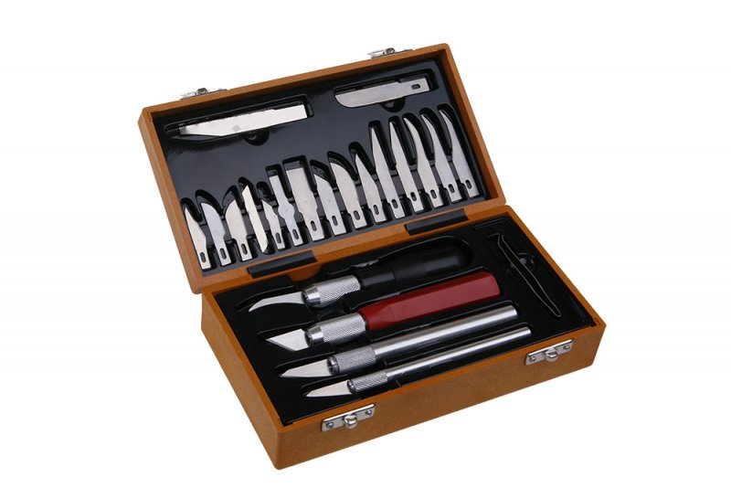 - 23 dílná souprava skalpelů a nožů - ergonomické rukojeti s rychloupínacím úchytem čepelí - široké možnosti využití v modelářství, řezbářství, průmyslu