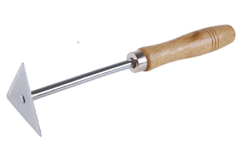 - škrabka na barvy a laky - dřevěná ergonomicky tvarovaná rukojeť zamezuje vedení tepla při práci s horkým vzduchem nebo plamenem - trojúhelníkový tvar umožňuje odstranit nátěry i v hůře přístupných místech - použití: škrabání barev a laků samostatně nebo v kombinaci s opalováním