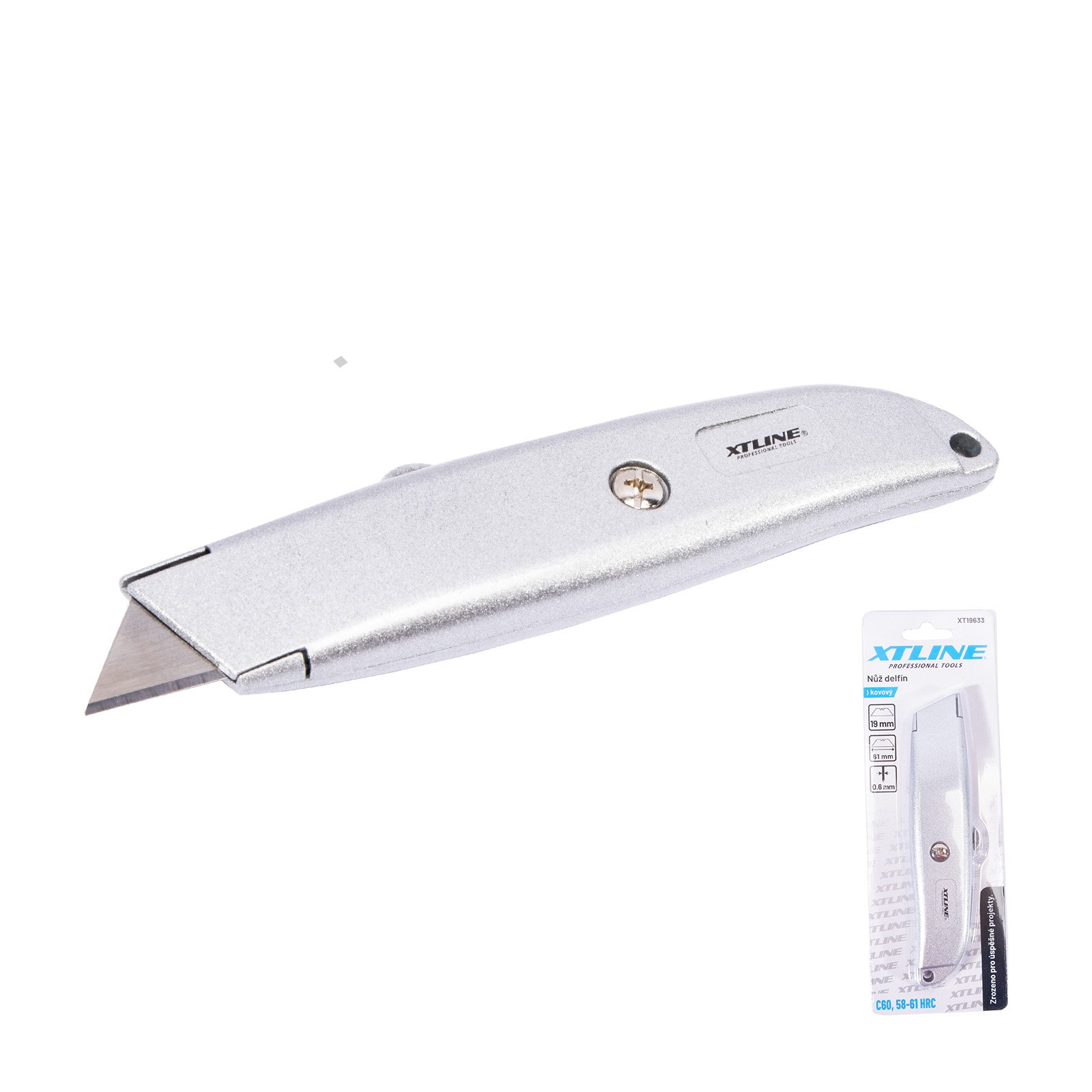 - plastový nůž s hákovou čepelí - šroubková aretace - bezpečné uložení ostří v rukojeti nože - vhodný na podlahoviny, kůži, textilie