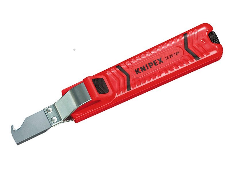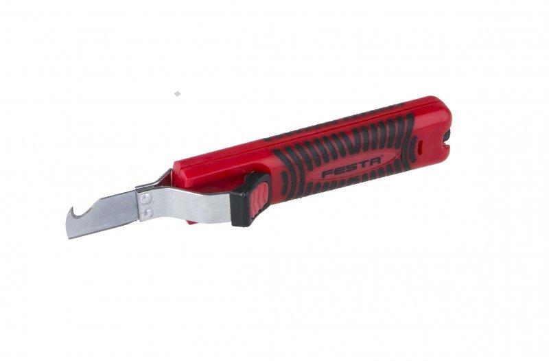 - k odstraňování plášťů všech běžných kabelů kruhového průřezu - samoupínací úchyt - s nastavením hloubky řezu pomocí nastavovacího šroubu - samootáčivý nůž pro obvodový a podélný řez - rezervní čepel v tělese nástroje - spolehlivé uchopení díky vložce z měkkých komponentů - plastové pouzdro odolávající rázovému nárazu - s nožem a háčkovou západkou