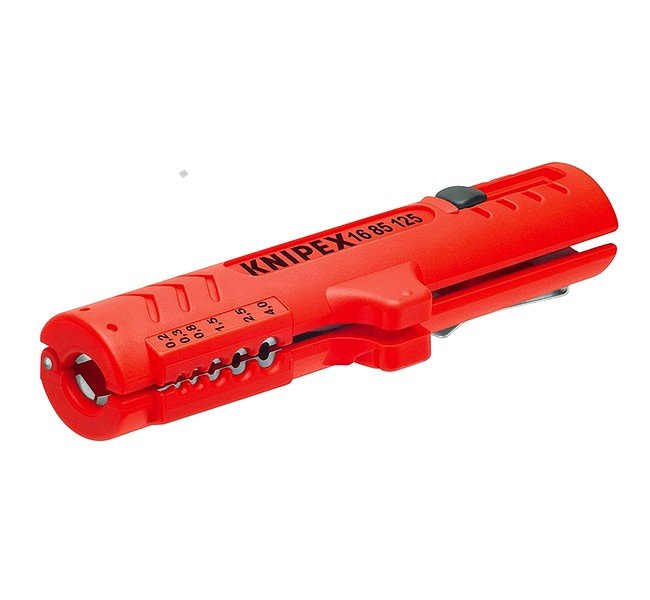 - k rychlému a přesnému odizolování všech běžných kabelů kruhového průřezu a kabelů pro vlhké prostory(např. kabelů NYM 3 x 1,5 mm2 až 5 x 2,5 mm2), datových kabelů (např. Twisted-Pair) a koaxiálních kabelů - ergonomický design pistolové rukojeti pro jednoduché naříznutí, stažení a podélné řezání izolace - kuželovitě zeštíhlené konce nástroje pro lepší přístupnost ve stísněných prostorách - nástroj pro odizolování pro průřezy 0,2 / 0,3 / 0,8 / 1,5 / 2,5 / 4 mm2 - jednodušší vkládání jednotlivých vodičů pro odizolování díky polohovacím můstkům - pohodlné vkládání koaxiálních a datových kabelů díky pomůcce pro otevírání - vícesložkový design se zónou z měkkého plastu pro pohodlnou manipulaci a bezpečné uchopení - těleso ze stabilního plastu zesíleného skelnými vlákny