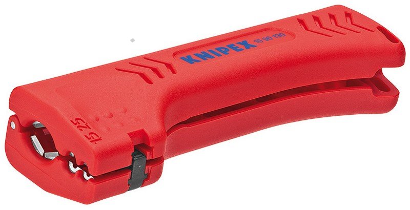 - k odstraňování plášťů a odizolování všech běžných kabelů kruhového průřezu a kabelů do vlhkého prostředí od O 8,0 do 13,0 mm (např. kabel NYM 3 x 1,5 mm2 do 5 x 2,5 mm2) - zejména pro větší průřezy a těžce zpracovatelné izolační materiály - odizolovací zařízení pro vodiče a lanka 1,5mm2 a 2,5mm2 - není nutné nastavení čepelí na hloubku řezu - oboustranný podélný doraz (ideální pro praváky a leváky) - upevňovací zařízení na konci rukojeti (pojistka proti upadnutí) - pro práci v omezených a těžko přístupných pracovních prostorách - pro použití v krabicových odbočnicích a skříňkách rozdělovače - těleso: plast, vyztužen sklolaminátem