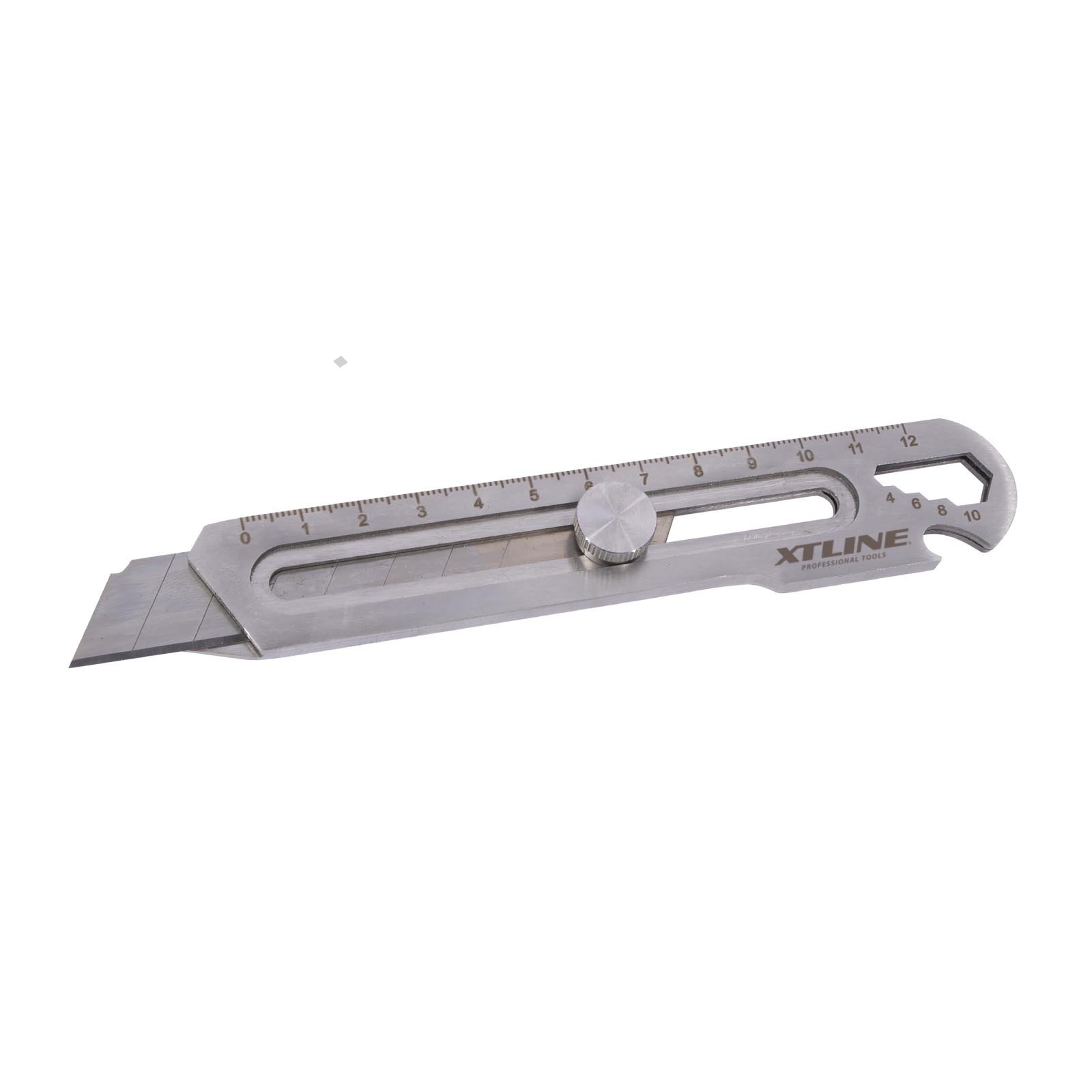 Multifunkční nerezový ulamovací nůž o šířce čepele 18 mm je ideálním nástrojem pro širokou škálu použítí. Je vybaven několika praktickými funkcemi: šroubovákem, ocelovým pravítkem s měřítkem, klíčem na matice, otvírákem na láhve, páčidlem ačepelí pro řezání. Konstrukce z nerezové oceli zajišťuje odolnost a dlouhou životnost.