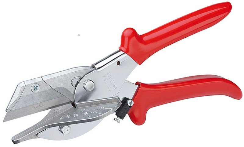 - střihání plastových, gumových a měkkých dřevěných profilů - plochý kabel do šířky 56 mm - bez deformace stříhaného materiálu - výměnné uložení břitu - dorazový úhel pro řezy pod úhlem 45° a značkami pro řezy pod úhlem 60°, 75° a 90° - s otevírací pružinou a blokovací západkou - těleso nástroje: speciální nástrojová ocel, válcovaná, kalená v oleji - čepel: standardní lichoběžníková čepel, vyměnitelná - pochromované nářadí - rukojeti s povlaky z umělé hmoty