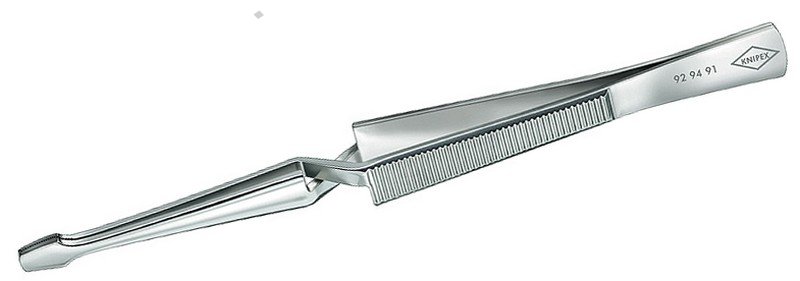 - pro uchopení menších součástek bez tlaku prstů - dobře svírající - poniklováno - pružinová ocel, vysoce pevná - úzké hroty - zahnuté hroty - plochy čelistí jemně ozubené - s povlakem rukojetí