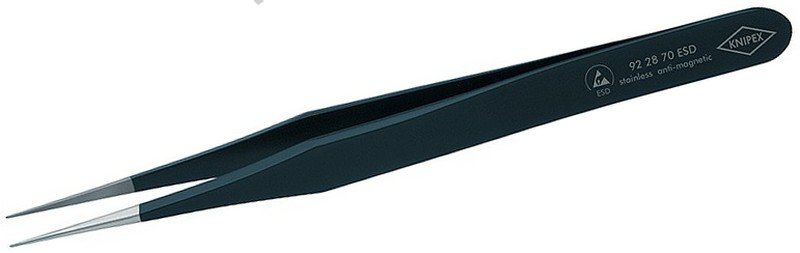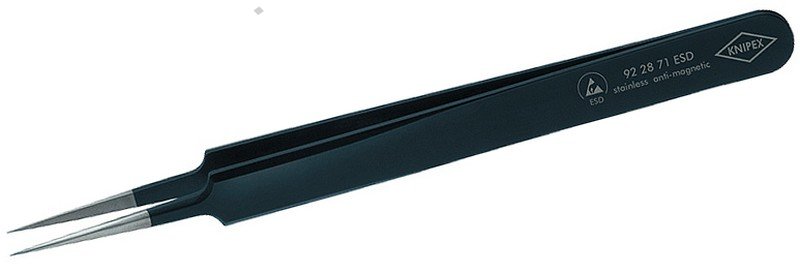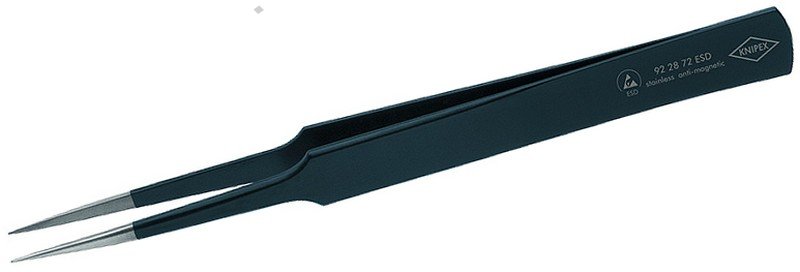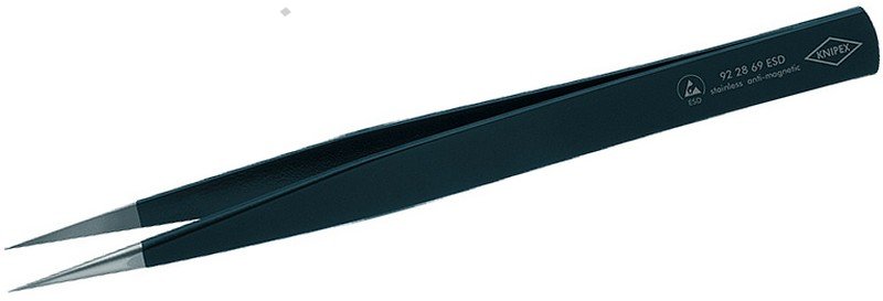 - chromniklová ocel, nerezová, antimagnetická (18/10) - povrchová úprava v provedení ESD - matově černá, s povrchovým odporem asi 10^5 ohmů - hroty kartáčované do matového lesku - plochy čelistí matované pro optimální uchopení - rovnýtvar - silný hrot - plochy čelistí hladké