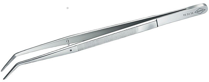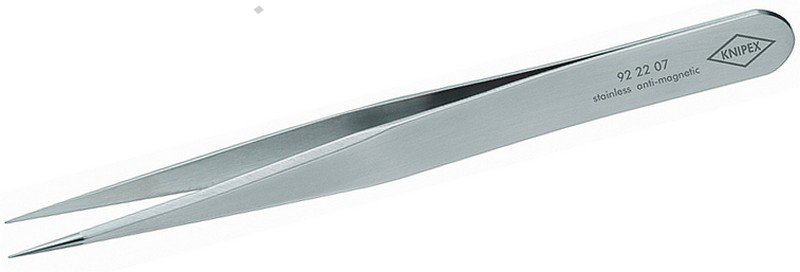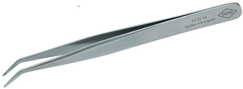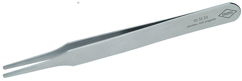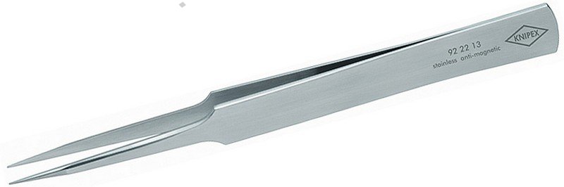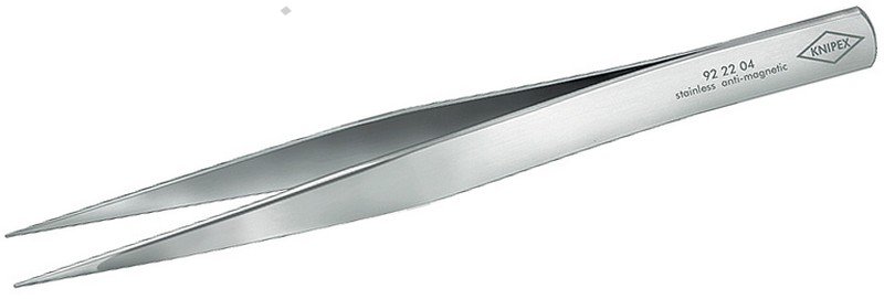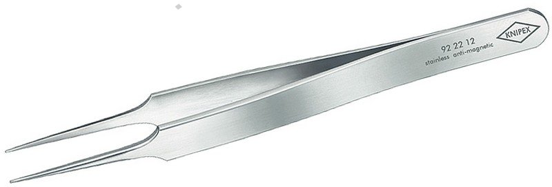 - plochy čelistí hladké - matováno - pro SMD-techniku - zahnuté hroty, široké asi 1 mm - čelisti pro uchopení válcových součástí o průměru 0,6 mm - plochy čelistí matované pro optimální uchopení - chromniklová ocel: nerezová, antimagnetická (18/10)