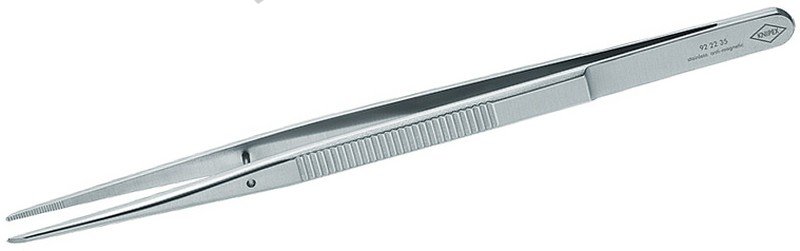- univerzálně použitelné - rovný tvar - široké kulaté hroty - drážkované rukojeti - kulaté hroty, široké asi 3,5 mm - plochy čelistí ozubené - matováno - nerezová antimagnetická ocel odolná vůči kyselinám