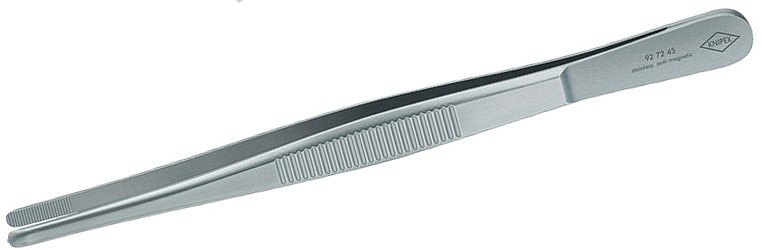 - montážní pinzeta - hranaté hroty, široké asi 0,9 mm - plochy čelistí jemně ozubené - poniklováno - pružinová ocel, vysoce pevná