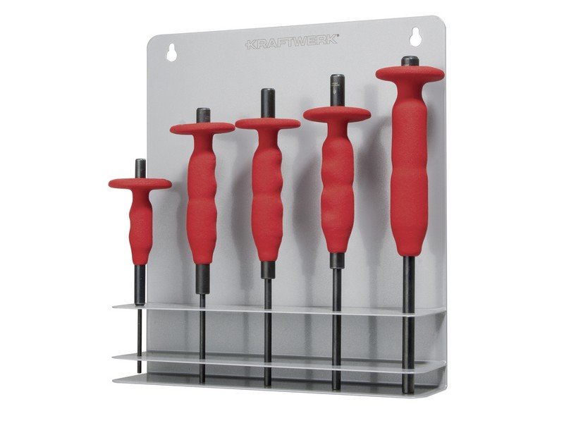 - 5-ti dílná souprava vyražečů - kulatý design s přesně zpevněnými koncovkami - průměr 3 x 160mm, 4 x 185mm, 5 x 200mm, 6 x 210mm, 8 x 225mm - kovový držák lze také namontovat na stěnu
