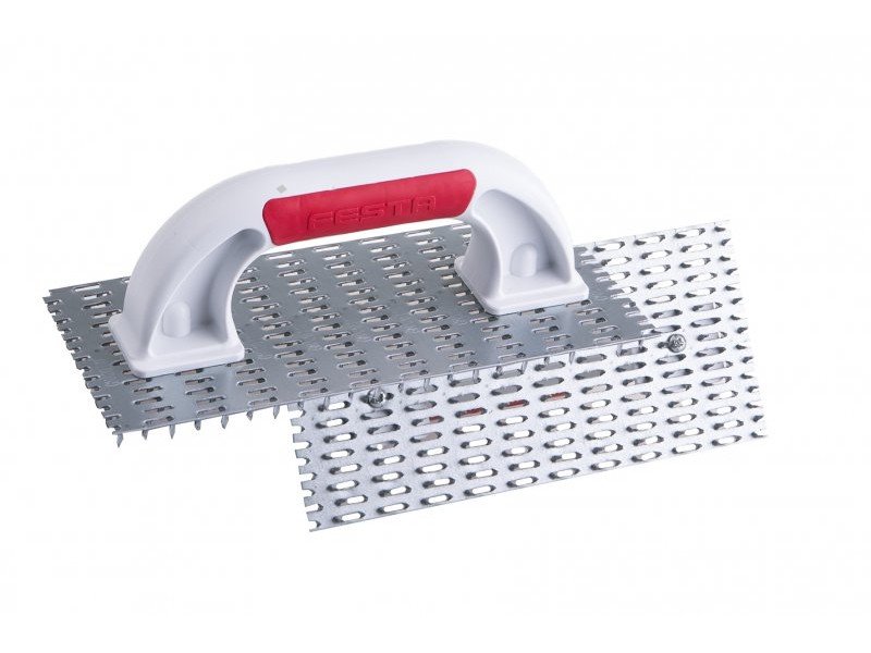 - mřížový ozubený škrabák na omítky s poplastovanou rukojetí - železný profil seskládaný do mřížovitého tvaru vyroben z ocelového pásového plechu tloušťky 2mm