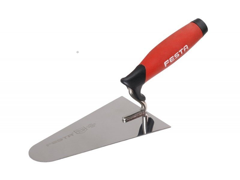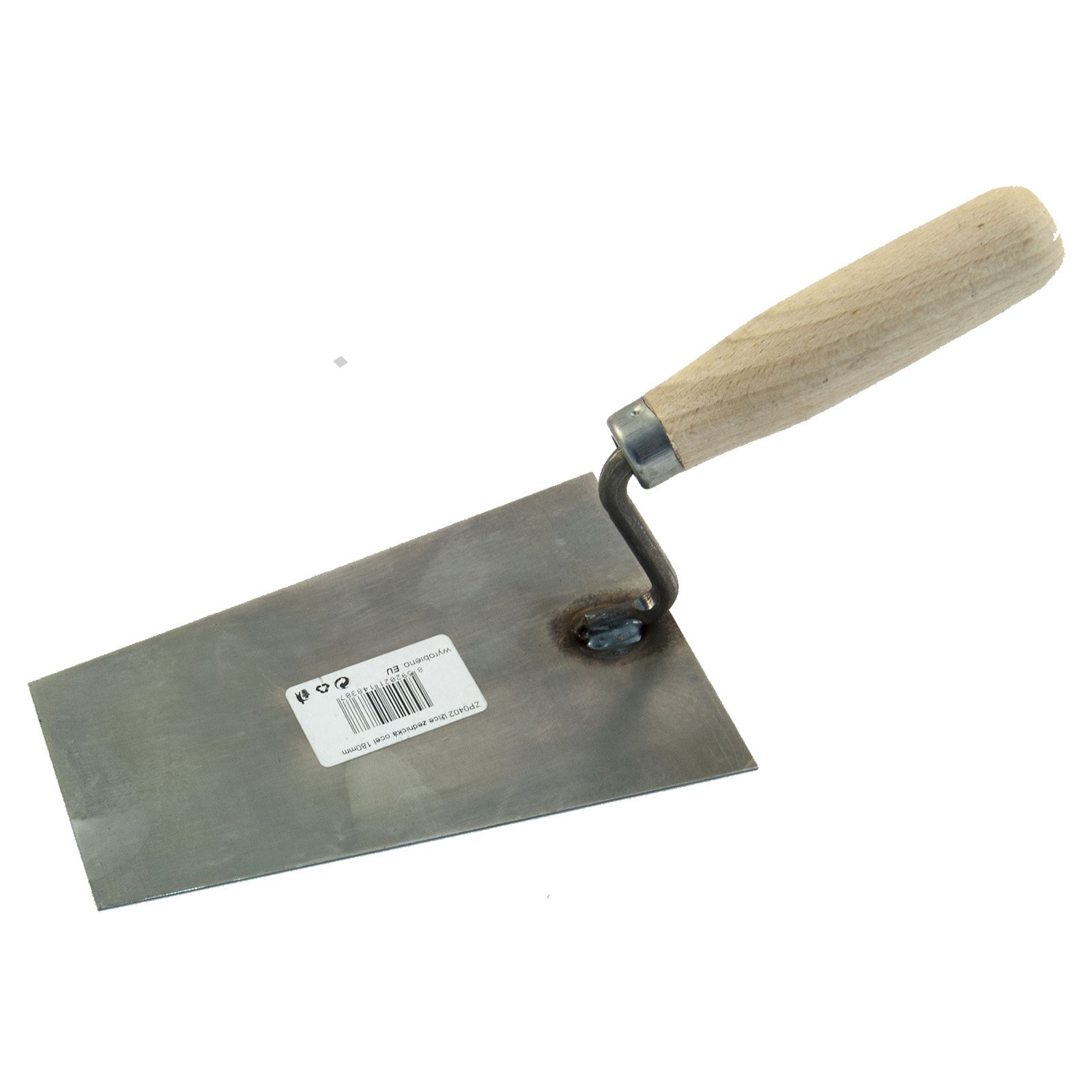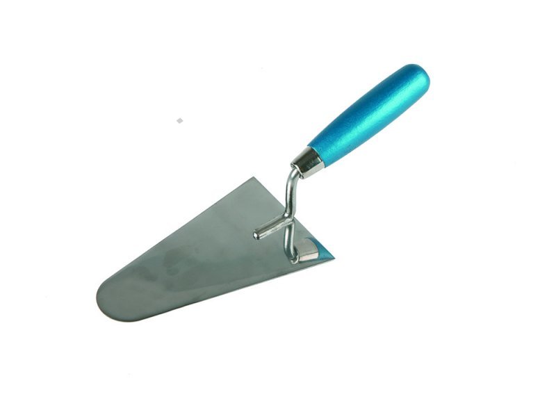 - ocelová zednická lžíce "kočičí jazyk" s dřevěnou ručkou - ručka s lakovanou povrchovou úpravou - použití: začištění a úprava omítek, štuků