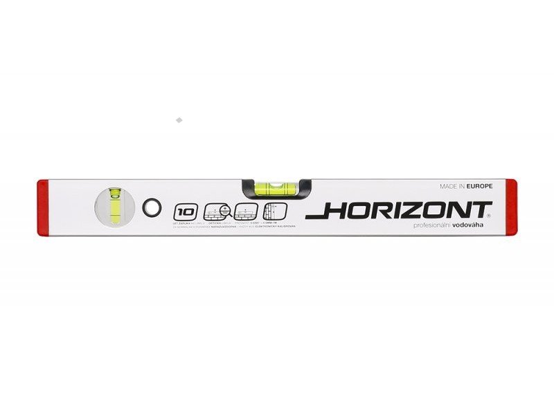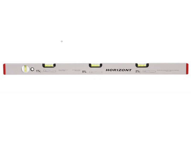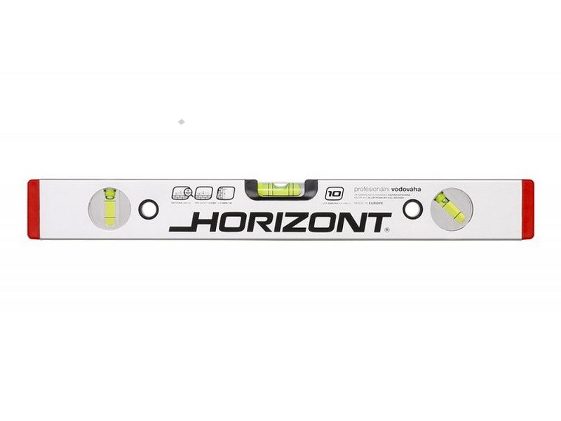- vodováha Horizont se třemi libelami - přesnost 0,5mm/m = 0,0285° - kapalina v libelách je fluorescenční a UV stabilní - horizontální optická libela, usnadňuje a zvyšuje přesnost měření - eloxovaný otěruvzdorný povrch - tloušťka stěny ALU profilu 1,5mm - odolná proti provozním nárazům