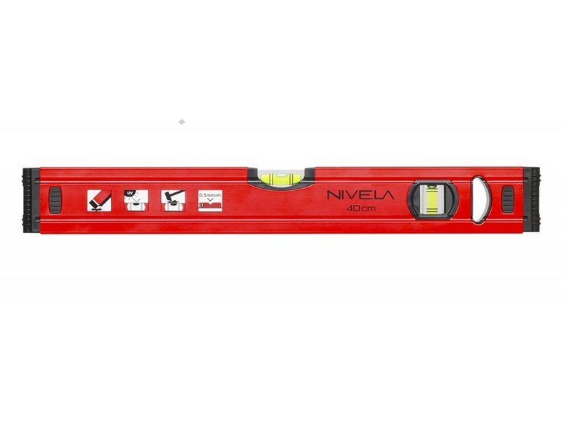 - vodováha se dvěma libelami - s přesností 1mm/1m - optická libela - fluorescenční kapalina - hliníkový profil, síla stěny 1,4mm - gumové koncovky