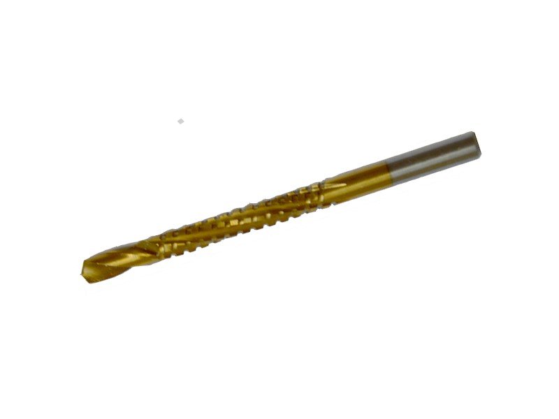 - frézovací vrták HSS s TiN ochrannou vrstvou TiN proti otěru, průměr 6 mm - používá se pro rozfrézování vyvrtaného otvoru do potřebného tvaru v plastu nebo dřevě