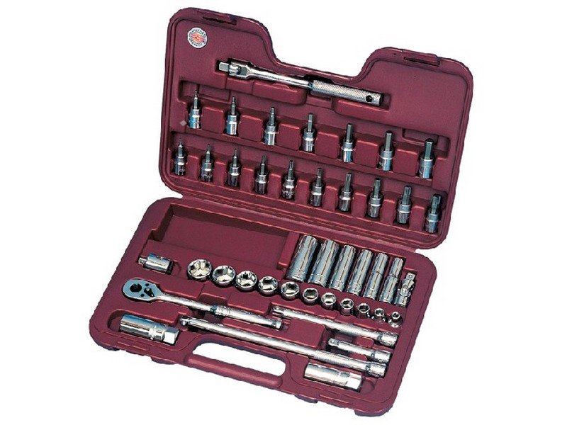 - 43-dílná gola souprava s palcovými nástavci a příslušenstvím určena pro všestranné použití zejména pro základní údržbářské práce v průmyslu i autoopravárenství - ráčna 3/8" celokovová 45 zubů - nástavce 3/8": 1/4"-7/8" - nástavce prodloužené 3/8": 3/8"-13/16" - nástavce s bity 3/8" Torx T10-T55, Inbus 1/8"-3/8" - vyrobeno z kvalitní chromvanadiové oceli - povrchová úprava: leštěný chrom - DIN 3124 / ISO 2725-1 - v plastovém kufříku