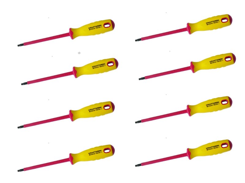 - 8-mi dílná sada šroubováků Torx VDE 1000V - ergonomicky tvarovaná rukojeť - rozměry: T10/T15/T20/T25/T27/T30/T40/T45