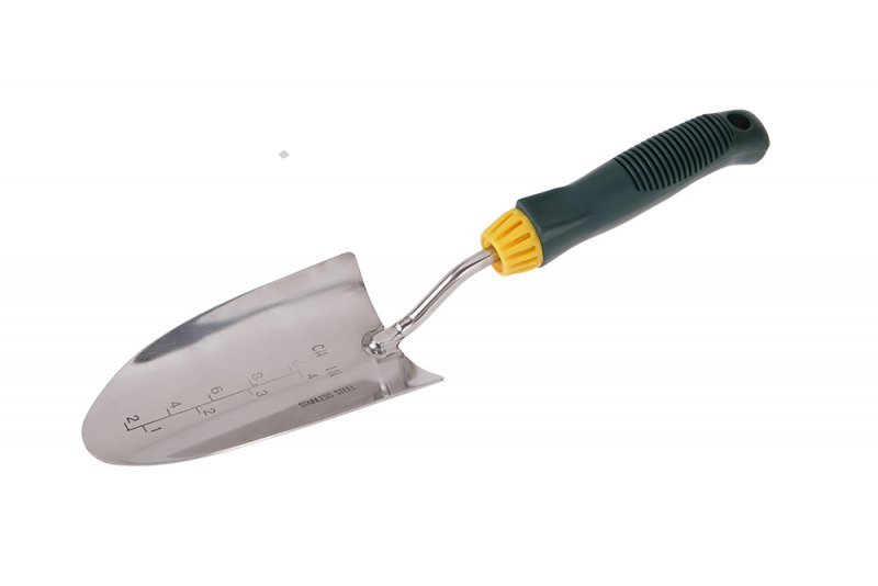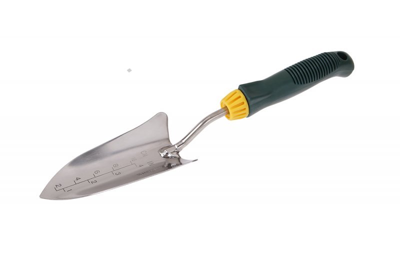 - úzká zahradní nerezová lopatka - praktická měrka pro snadné docílení správné hloubky při sázení - kvalitní materiál i zpracování - ergonomická plastová rukojeť - použití: pro veškeré práce na zahrádce, pro praci s pokojovými rostlinami