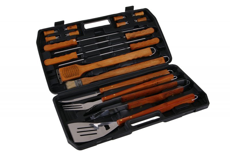 - sada nářadí pro grilování - materiál: nerez / dřevo - snadná a bezpečná manipulace s pokrmy při tepelné úpravě na grilu a pánvi - použití: ucelený set nářadí pro grilování a vaření, v domácnosti, na zahradě, při kempování - uloževno vplastovém boxu