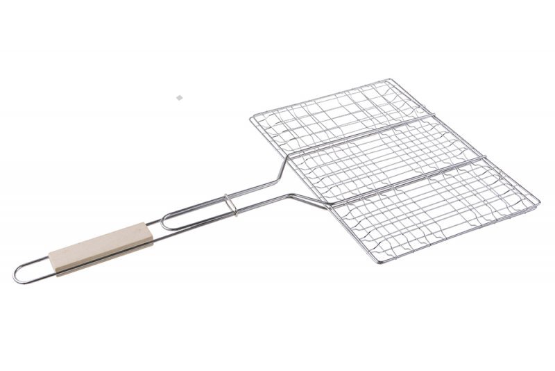 - grilovací mřížka - pokrm vkládáme mezi dvě mřížeky, uzavřeme, zajistime pojistkou a umístíme na gril/rošt - snadná a bezpečná manipulace s připravovaným pokrmem - použití: grilování masa, zeleniny a jiných grilovaných specialit